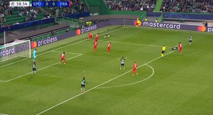 在上半場第39分鐘,法蘭克福率先丟球,半場0-1落後。這讓法蘭克福陷入了絕境,因爲他們在下半場必須要打進2球或以上,才能晉級歐冠16強。