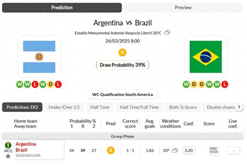 巴西在世界盃南美區預選賽的客場比賽中平均進球 0.83