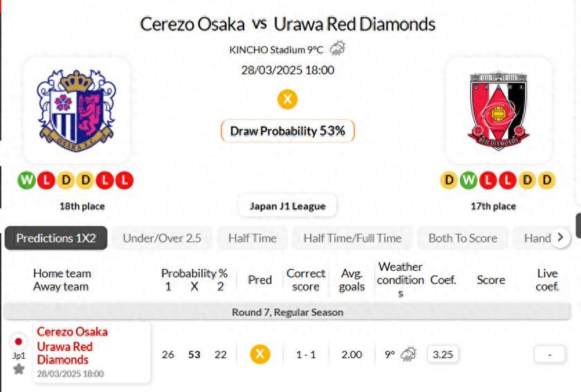 大阪櫻花在他們最近的 3 場 J1 聯賽中,在半場和全場都擊敗了浦和紅鑽
