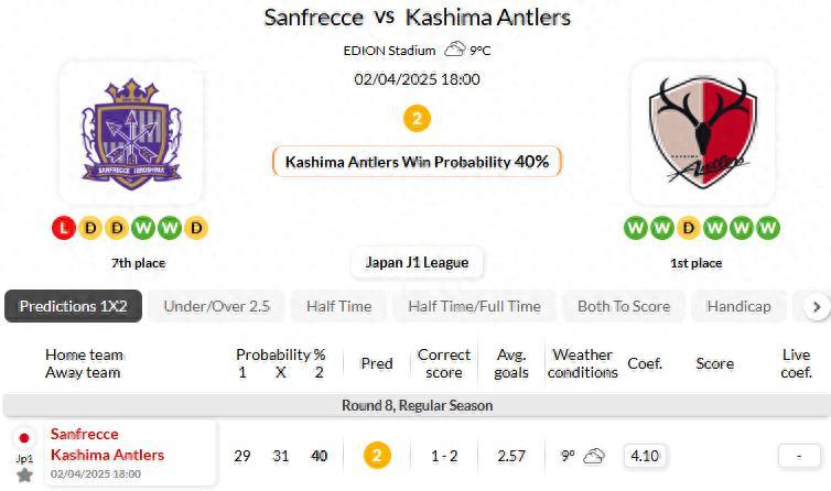 Kashima Antlers have defeated Sanfrecce in just 1 of their last 6 meetings in J1 League