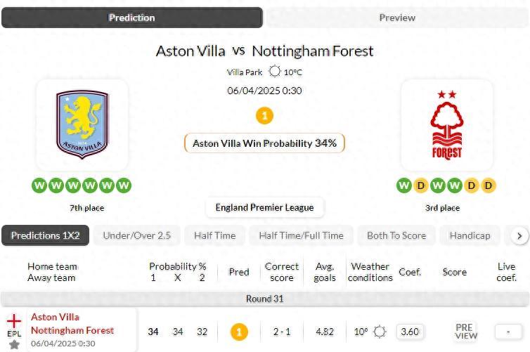 英超 阿斯頓維拉VS諾丁漢森林