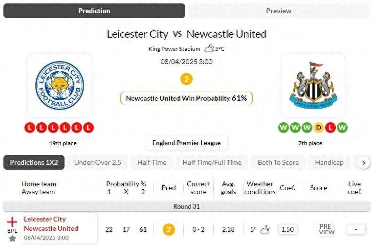 紐卡斯爾聯隊在最近與萊斯特城的所有比賽中的4次比賽中都成功保持了不失球