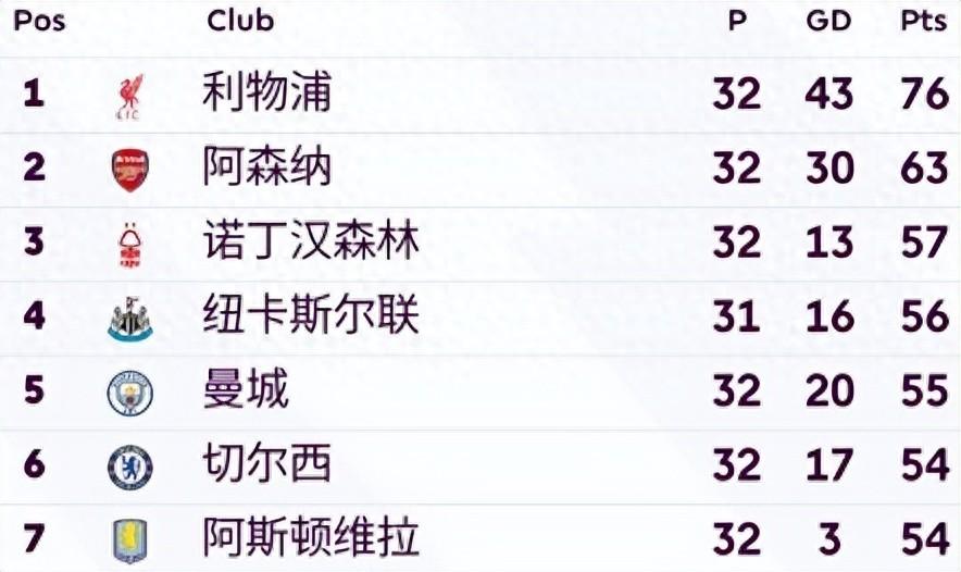 阿斯頓維拉同樣積54分,因淨勝球劣勢排在切爾西之後。他們本輪3-0完勝南安普頓,取得聯賽四連勝。不過比賽中阿森西奧兩度罰失點球,暴露出球隊在關鍵球處理上的隱患。