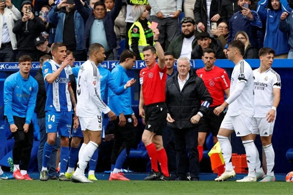 教練席上的安切洛蒂表情無奈,顯然知道必是紅牌。姆巴佩的隊友巴斯克斯也對法國球星說:“他們會罰下你的,兄弟。”西班牙媒體還發現姆巴佩第38分鐘蹬踏布蘭科前,第27分鐘時皇馬球星已經試圖揮拳擊打布蘭科的頭部,只是沒打中且被裁判無視。但顯然,這個報復動作也是紅牌。