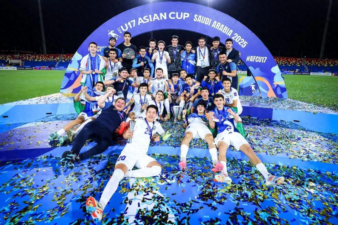 2025年U17亞洲盃冠軍,是1994年亞運會男足奪冠以來烏茲第5個亞洲冠軍,31年前在廣島亞運會,首次參加亞洲大賽的中亞“白狼軍團”7戰全勝奪冠;31年後再次以6戰全勝完美戰績奪冠的烏茲,向整個亞洲證明了全方位重建青訓體系,不拘一格培養足球人才的成功。