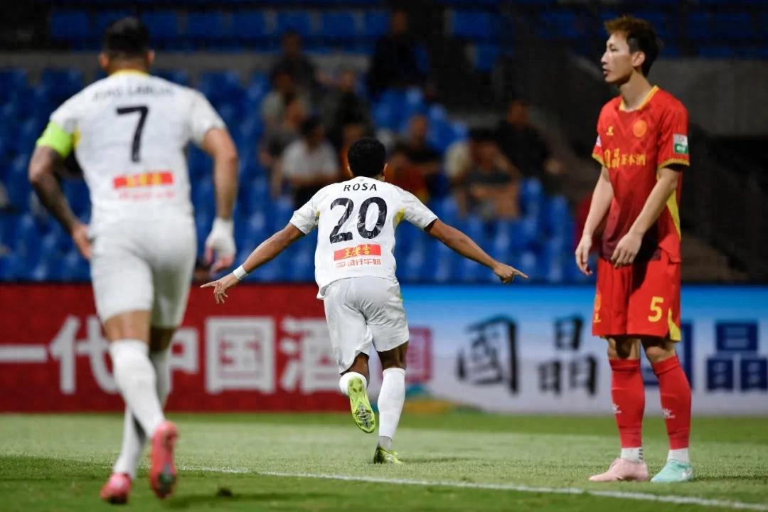 下半場剛開場3分鐘,崔星隆在右路找到羅薩,後者一腳小角度的低射再度洞穿對手城池,打進個人賽季第3球,廣州豹客場3球領先。隨後,廣州豹先後換上樑學銘、晏紫豪等球員。第83分鐘,廣西平果由馬特烏斯扳回一球,值得一提的是,這是本賽季他們在中甲打進的第一球。