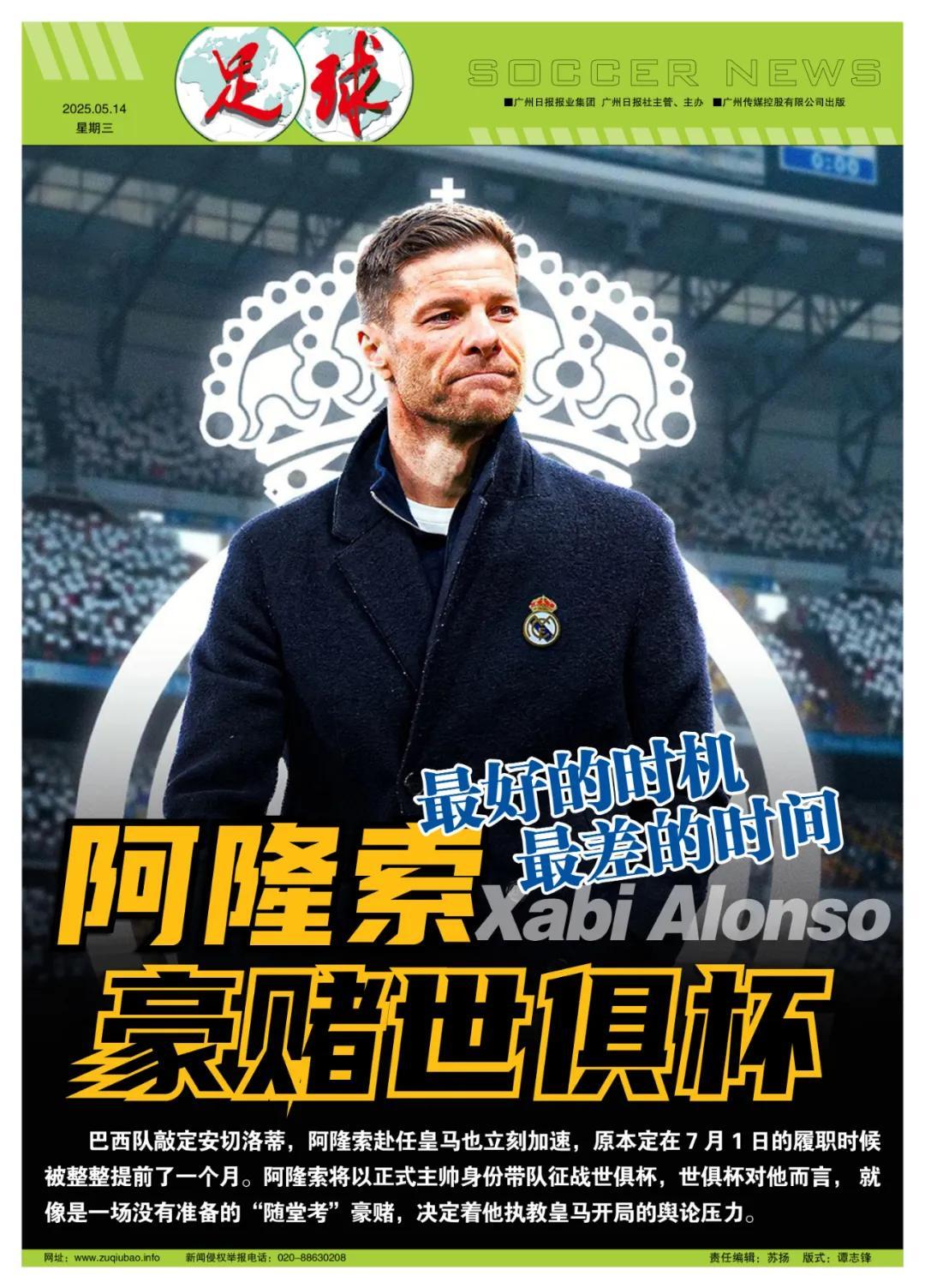 安切洛蒂官宣執教巴西隊,阿隆索上任皇馬也被立刻提上日程。皇馬原先由助教索拉里臨時帶隊的構想被否決。阿隆索假期縮短,從原本7月1日履職提前一個月,以正式主帥身份帶隊征戰世俱杯。而他在只有兩週的假期內也要與皇馬保持緊密聯繫,確保3名後衛新援及時到位,纔有更多豪賭世俱杯的“籌碼”。