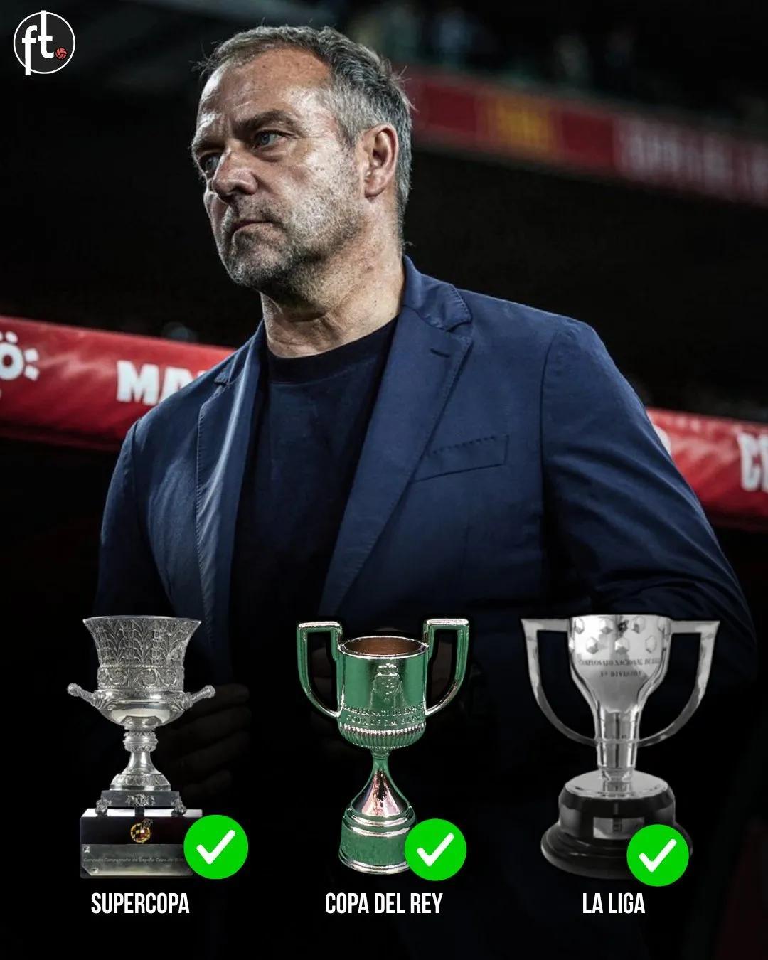 這是1951/52賽季以來,巴薩第9次拿到聯賽和杯賽雙冠王,上次是2017/18賽季。但更令巴薩人驕傲的是繼1952/53賽季以來,巴薩在同賽季內第2次奪得國內三冠王(超級盃、國王杯和西甲冠軍)。當年是捷克斯洛伐克名帥道奇克執教,超級盃名稱還是杜阿爾特杯。如今是德國名帥弗裏克執教,超級盃變成難度更大的海外四隊賽。巴薩隊史合計13次拿到雙冠與國內三冠王擦肩而過,2008/09賽季以來,巴薩8次錯過國內三冠王機會,巔峯期瓜迪奧拉“夢三隊”都無法達此成就(2008/09賽季的六冠王爲同年度,並未拿到2008/09賽季西超杯冠軍)。皇馬隊史只有1988/89賽季拿到過國內三冠王,可見國內大滿貫的難度。