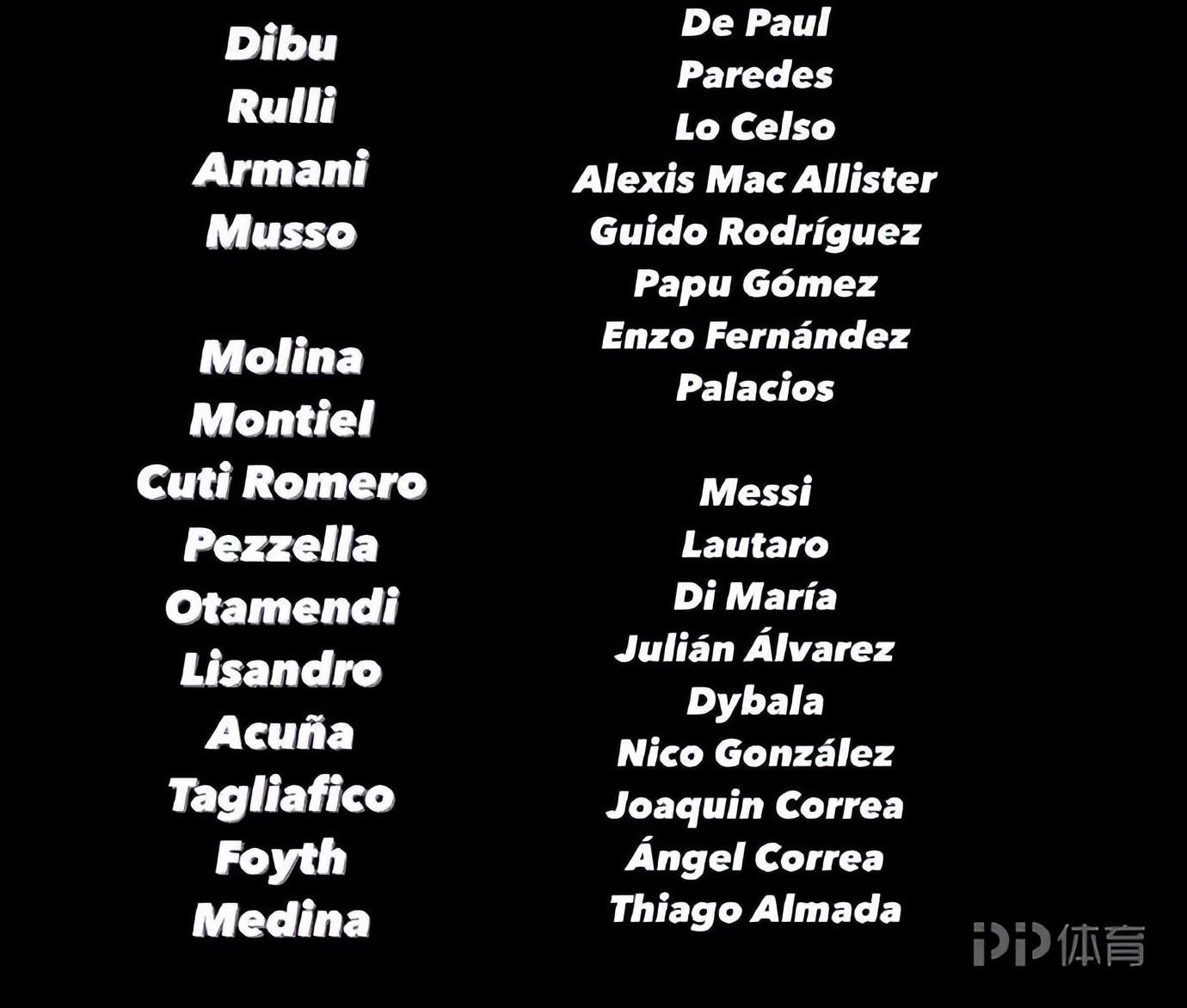 中場:德保羅(馬競)、帕雷德斯(尤文)、洛塞爾索(比利亞雷亞爾)、麥卡利斯特(布萊頓)、圭多-羅德里格斯(貝蒂斯)、A-戈麥斯(塞維利亞)、恩佐-費爾南德斯(本菲卡)、埃塞基耶爾-帕拉西奧斯(勒沃庫森)