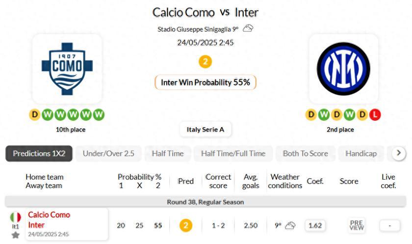 - Inter haven''t allowed a single goal in their last 3 consecutive clashes with Calcio Como in Serie A