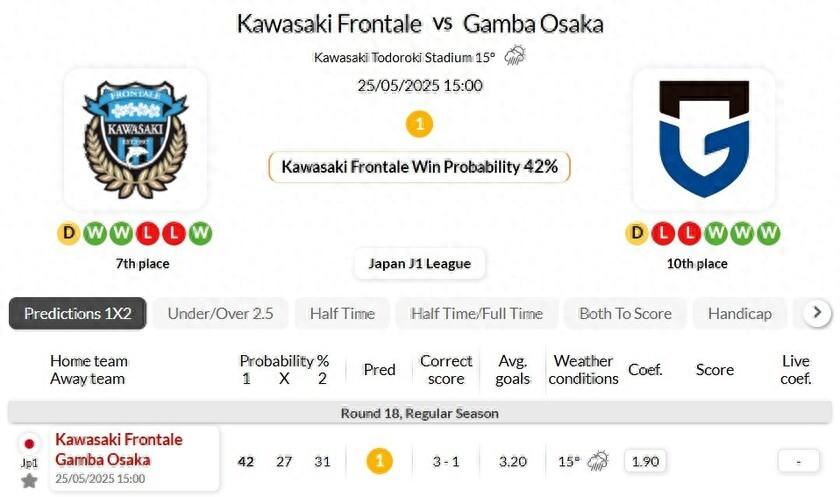 在J1聯賽最近6場主場比賽中川崎前鋒沒有輸過一場