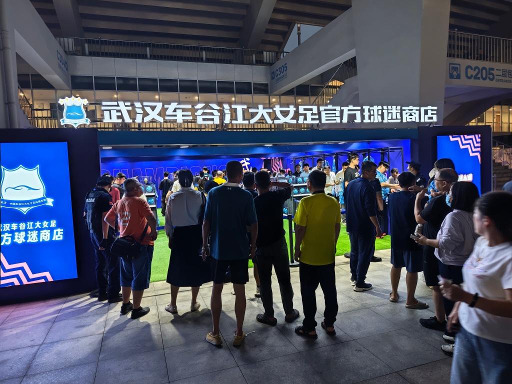賽場外的“武漢車谷江大女足官方球迷商店”同樣吸引了球迷關注。據商店負責人介紹,這個武漢女足主題商店開創了中國女足俱樂部周邊衍生品的先河,算是國內第一家,目的主要是傳遞武漢球迷文化,不太考慮盈利。據悉,在21-24日亞冠決賽期間,店鋪所有商品銷售一空,銷售額超出預期達10萬元。據介紹,店鋪隨後將遷往武漢江大女足在女超聯賽的主場塔子湖體育中心,在主場賽事期間繼續服務武漢球迷。
