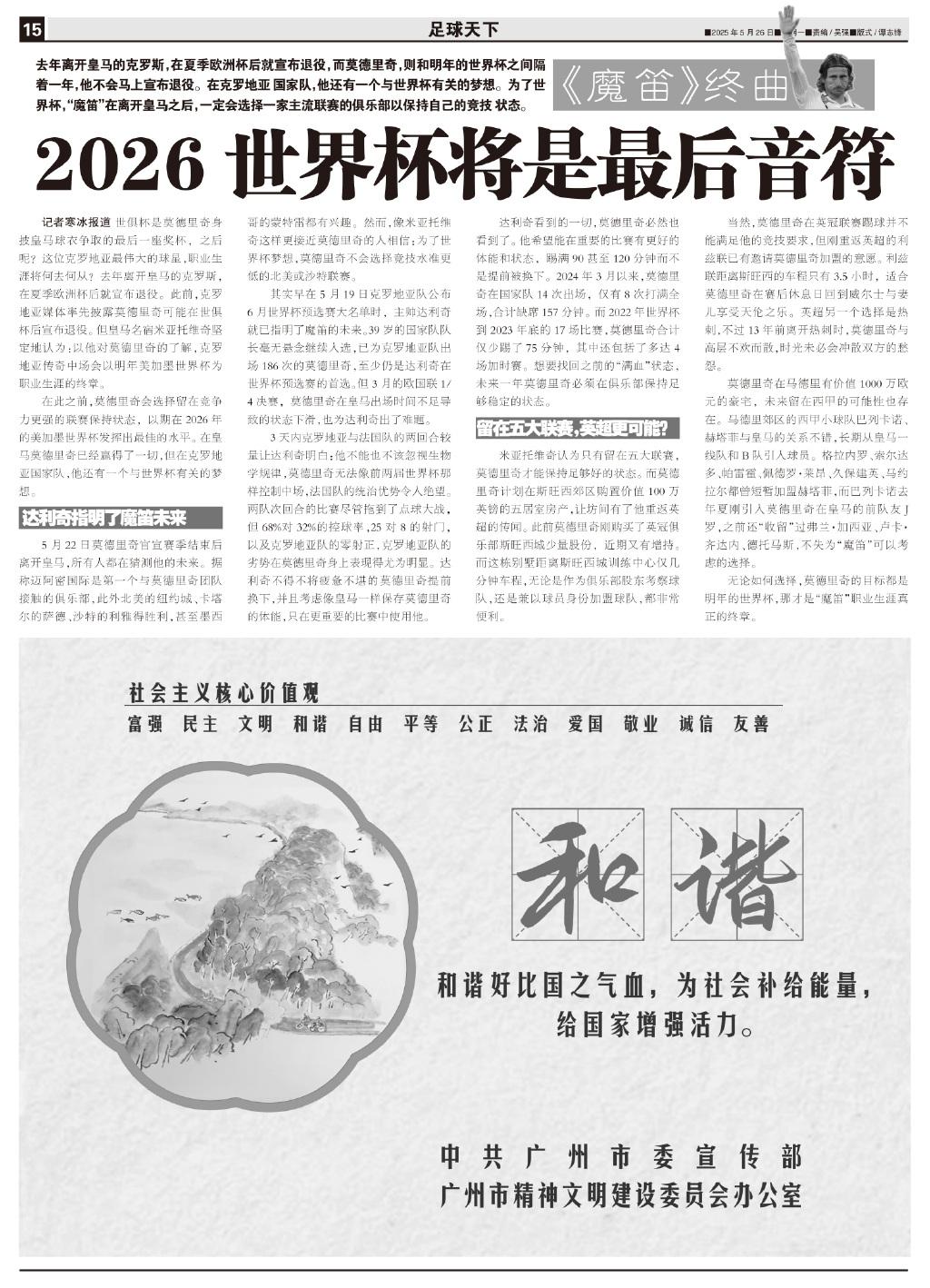記者寒冰報道 世俱杯是莫德里奇身披皇馬球衣爭取的最後一座獎盃,之後呢?這位克羅地亞最偉大的球星,職業生涯將何去何從?去年離開皇馬的克羅斯,在夏季歐洲盃後就宣佈退役。此前,克羅地亞媒體率先披露莫德里奇可能在世俱杯後宣佈退役。但皇馬名宿米亞托維奇堅定地認爲:以他對莫德里奇的瞭解,克羅地亞傳奇中場會以明年美加墨世界盃爲職業生涯的終章。