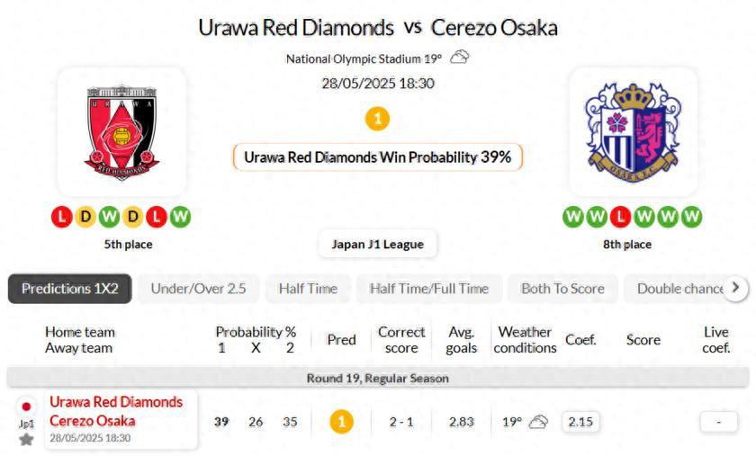 浦和紅鑽在最近7次與大阪櫻花的J1聯賽交鋒中只取得了1場勝利