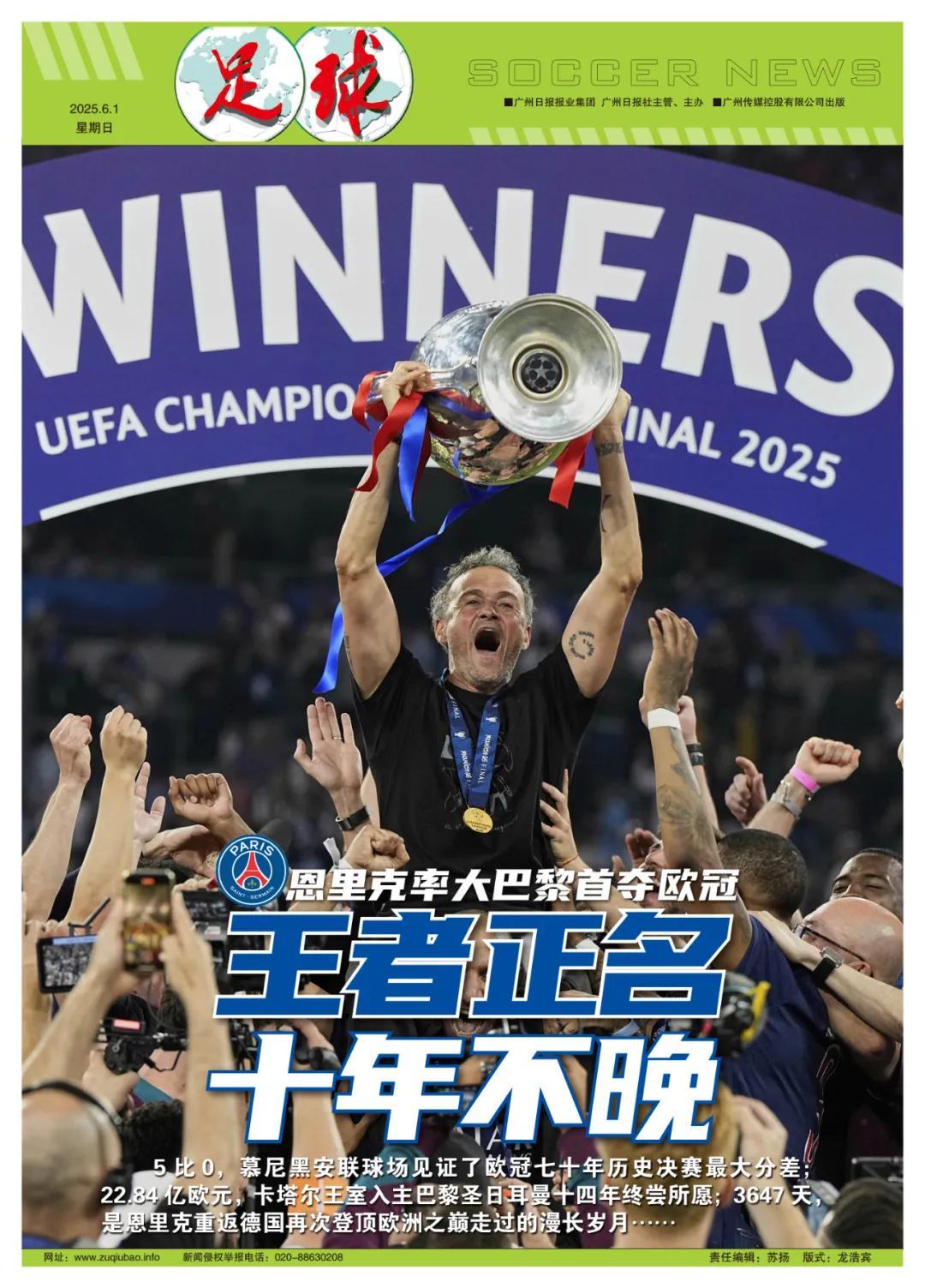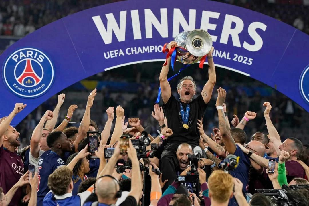 撰稿/寒冰 5比0,慕尼黑安聯球場見證了歐冠七十年曆史決賽最大分差;22.84億歐元,卡塔爾王室入主巴黎聖日耳曼十四年終嘗所願;3647天,是恩裏克重返德國再次登頂歐洲之巔走過的漫長歲月——十年太久,久到他與當年在柏林奧林匹克球場揮舞巴薩旗幟的愛女夏娜天人永隔;十年不晚,當他率領沒有MSN的年輕球隊捧起歐冠冠軍獎盃,他的小天使已經“換上”了巴黎球衣,在看臺上,在他胸前……