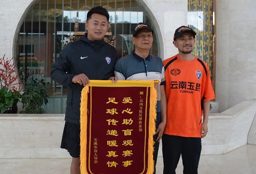 ▲玉昆俱樂部副總顧文祥接受玉溪市盲人協會贈送的錦旗 圖/玉溪市融媒體中心