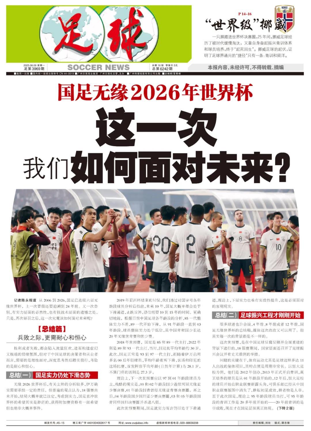 記者陳永報道 從2006到2026,國足已連續六屆無緣世界盃,上一次晉級還要追溯到24年前。又一次告別,有實力層面的必然性,也有技戰術層面的遺憾之處。只是,再次鎩羽之後,這一次究竟該如何面對未來呢?