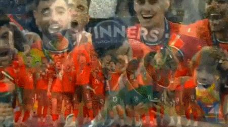 賽後,C羅激動落淚,久久跪地不起,頒獎時他壓軸登場,並扛起獎盃與隊友瘋狂慶祝。
