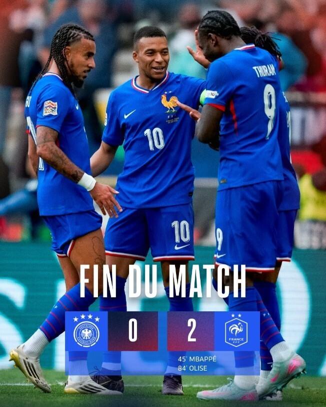 在此前進行的季軍爭奪戰中,法國隊憑藉姆巴佩的進球和奧利塞的鎖定勝局,以2-0擊敗德國隊,收穫本屆歐國聯季軍。德國隊儘管上半場佔據優勢,但始終未能攻破法國防線,反倒被姆巴佩的反擊打破僵局,最終遺憾落敗。