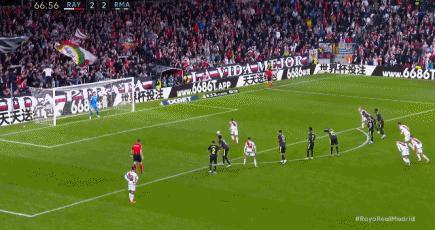 第40分鐘,阿森西奧開出右側角球,米利唐頭槌破門,皇馬5分鐘連進2球,瞬間把比分反超2-1。