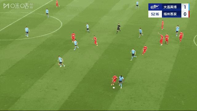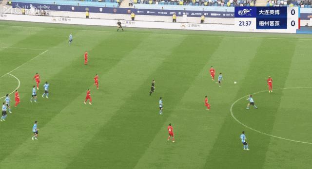 比賽一開始,兩隊立即圍繞中場展開激烈拼搶,比賽也陷入膠着狀態。梅州立足防守反擊,而英博通過高位逼搶施壓。不過第22分鐘,大連英博中場傳球失誤,楊超聲在中圈附近迎來絕佳反擊機會,隨後對手戰術犯規將其剷倒在地,主裁對犯規的曹海清判罰了黃牌,引起了梅州場上球員的不滿。