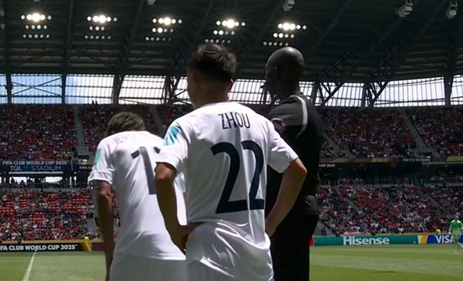 中國球員周通在下半場替補登場亮相,是一個亮點。可是,他在替補登場後一分鐘,他的主隊奧克蘭城就丟球了。他上來後,穆西亞拉在短短16分鐘內完成了帽子戲法,讓本屆世俱杯唯一一位中國球員徹底淪爲了背景板