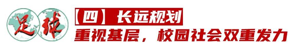 完成賽事統籌規劃、賽事質量提升、全面國際交流和精英青訓扶持後,中國青訓可穩住基本盤,可基本確保中國青少年足球的穩定發展,但要實現中國青少年足球振興發展,仍需在基層層面發力。這包括校園足球的進一步完善和普及以及社會足球的全面發展,後者雖然不僅限於青少年足球,但對青少年足球的帶動作用非常明顯。