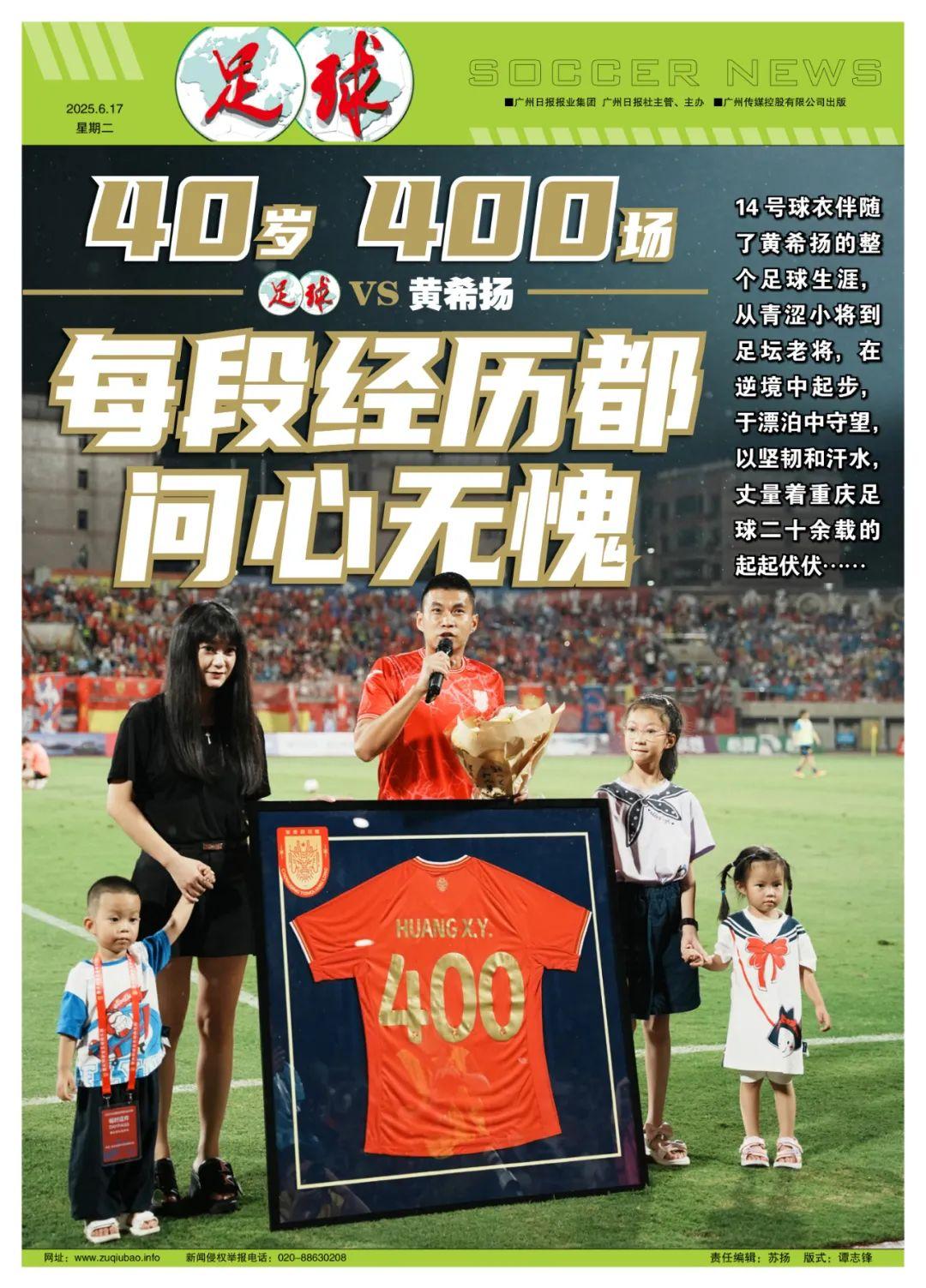 記者魯蜜報道 2025年5月31日,重慶銅梁龍客場對陣佛山南獅,黃希揚在第81分鐘登場,達成個人職業生涯400場成就;2025年6月14日,是黃希揚的40歲生日。6月14日,重慶銅梁龍主場1比1戰平大連鯤城,賽前,銅梁龍俱樂部爲黃希揚舉辦了一個隆重的400場紀念儀式。