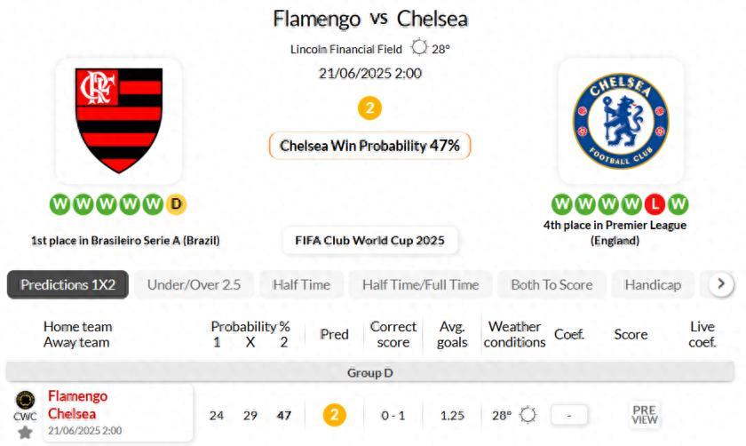 切爾西上一場戰勝了洛杉磯FC,全場控球率佔近7成,射門次數高達17腳