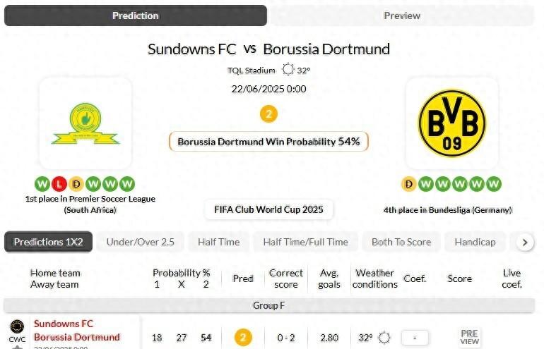 由於兩支球隊都展示了他們找到進球的能力,根據我們的算法預測,馬姆洛迪日落和多特蒙德之間的比賽準備進行一場激動人心的交鋒,預計將超過2.5個進球。