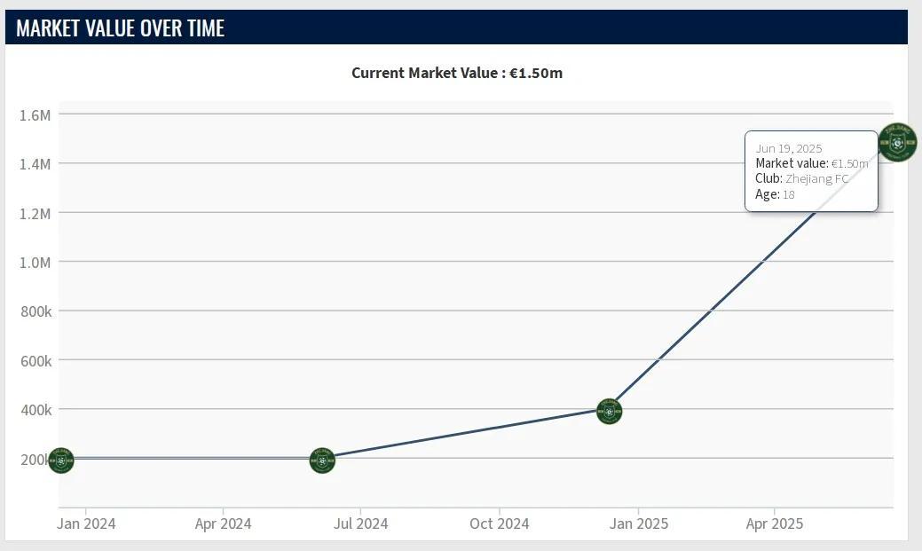 善用新人方面,浙江隊身價比賽季初增加37萬歐元,在4名外援身價齊跌之際,王鈺棟爲首的本土新人身價全面上升。王鈺棟、陶強龍、汪士欽、劉浩帆4名23歲以下新人身價總計增長達135萬歐元,在頭號外援布彭扎意外去世的不利背景下,更多依靠本土新人基本穩住了成績。大連英博球隊身價淨增5萬歐元,其中25歲以下本土新人5人身價上升。球隊身價榜從第14升到第12,積分榜升到第11位。