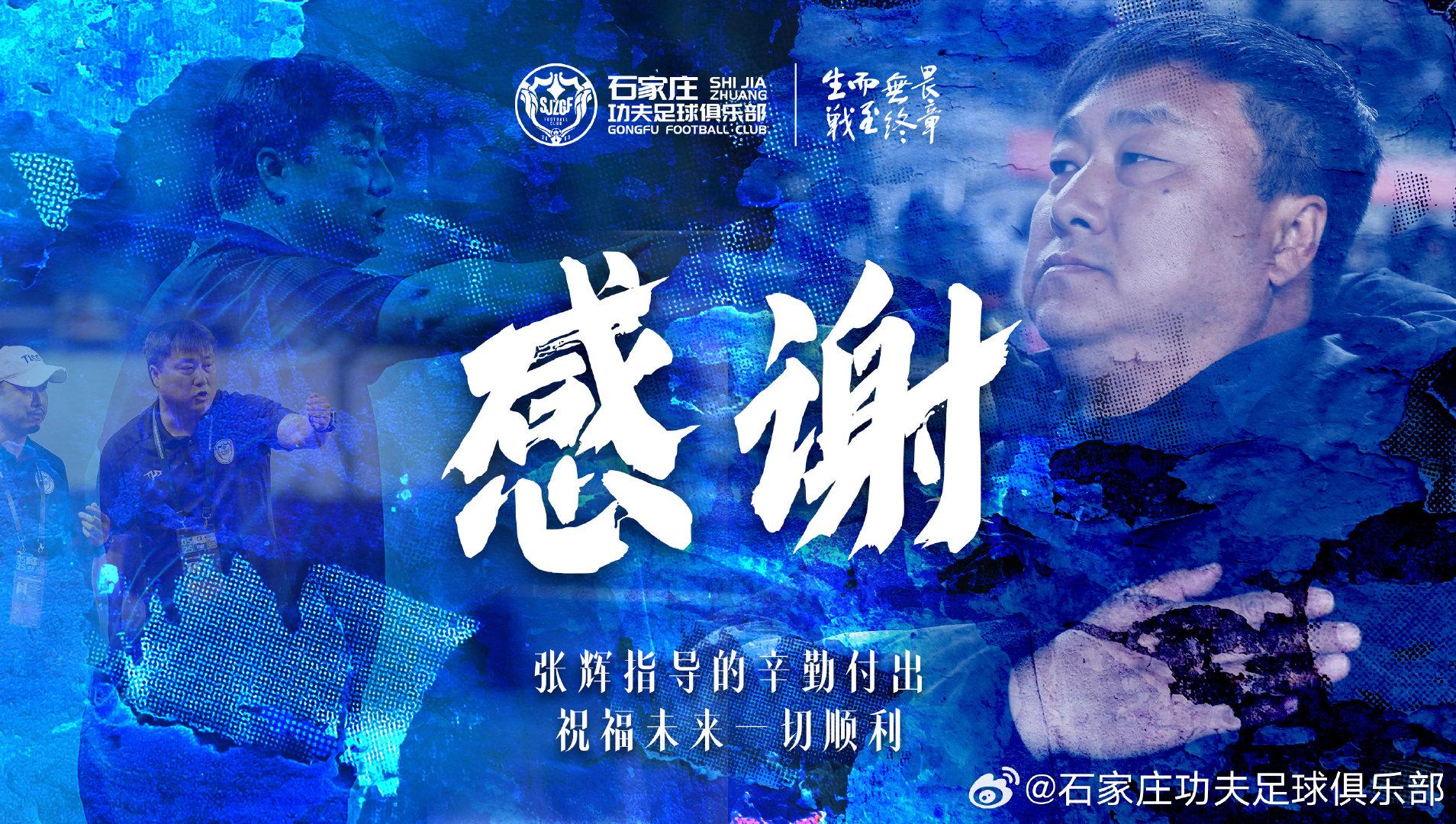 從深圳返回石家莊後,功夫隊一直在張輝帶領下照常訓練,就在6月19日下午的訓練結束後,張輝在訓練場邊分批與球員談心,陸續向大家透露自己辭職的消息,從主力到替補和年輕隊員,每次交談只有三四人,一直從下午6點談到近晚上9點。就在當晚,石家莊功夫俱樂部的許多工作人員還不知道主教練已經辭職。第二天(6月20日)下午,石家莊功夫俱樂部發布一張主題爲感謝的官方海報,對外公佈了張輝辭職的消息。