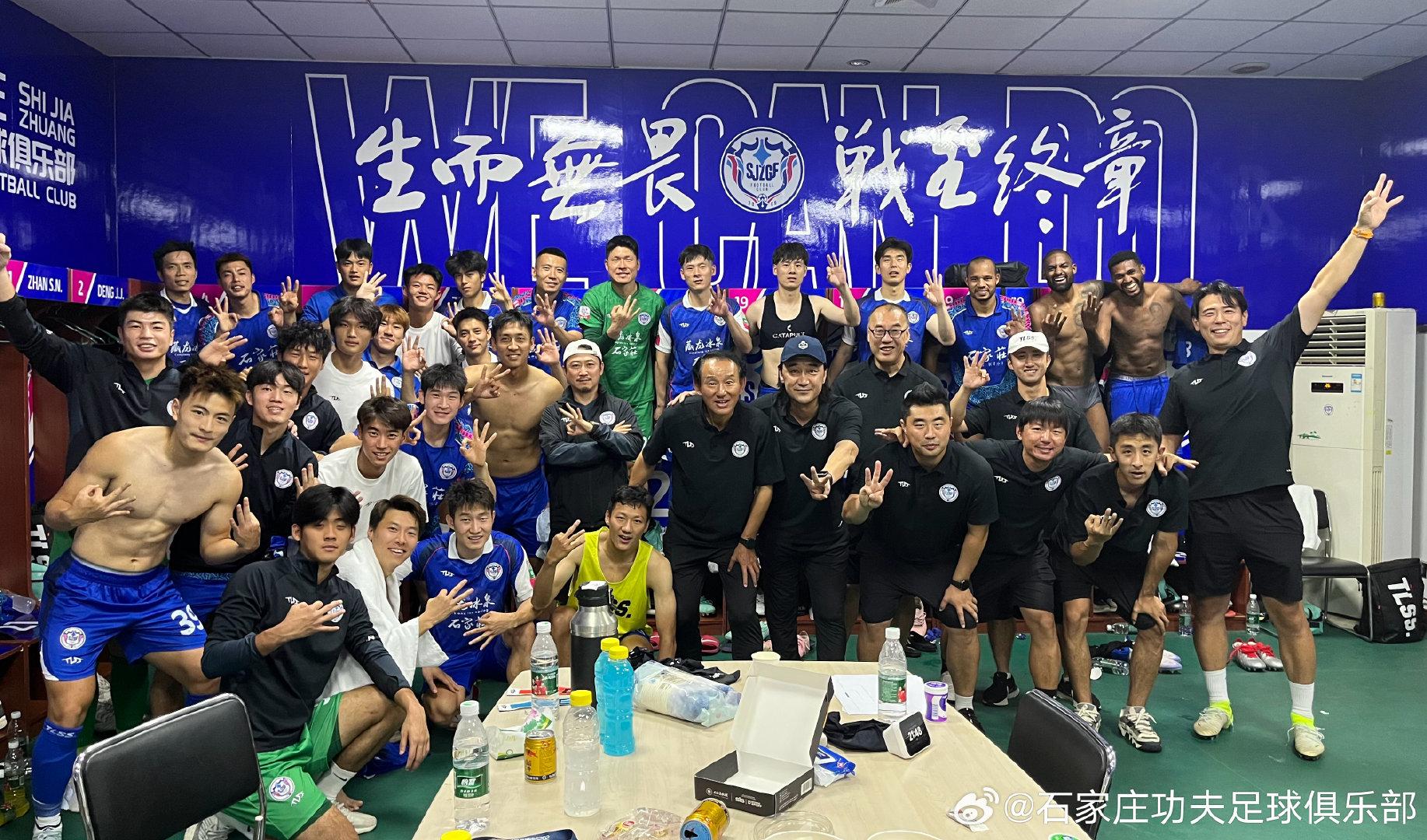 在這場比賽前,石家莊功夫的大巴下午5點就抵達了賽場,較往常提前了半個小時。利用這半個小時的時間,牛洪利到更衣室與全隊會面並做了賽前訓話。這些細節似乎透露出更多信息,那就是新任主帥已實際參與了這場與重慶銅梁龍比賽的部署和指揮。賽後石家莊功夫俱樂部發布的一張更衣室合影中,牛洪利也佔據了C位。