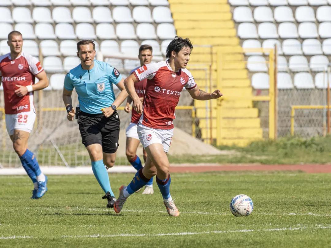 地中海地區的日落很晚,天氣也不錯,雖然僅用6根燈柱照明,球場亮度已經可以滿足比賽的需要。一個月前的這場比賽,穿着23號紅白球衣的李嗣鎔踏上場地,他得到了45分鐘的出場時間,這也是他這個賽季登場的時間上限。每一次衝刺、每一次變向,李嗣鎔都格外小心左膝,因爲這個位置他曾受過重傷。