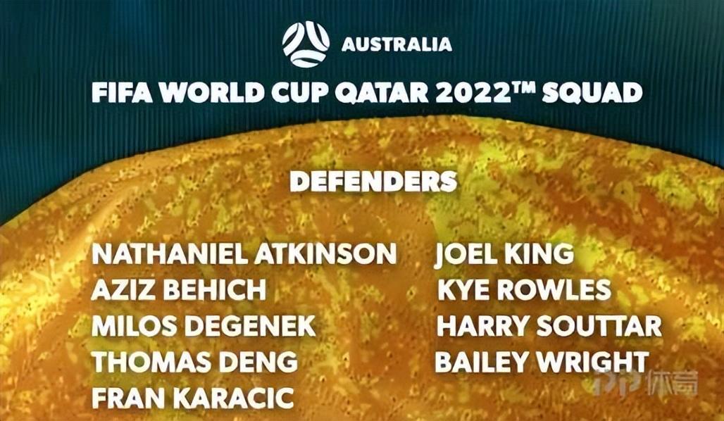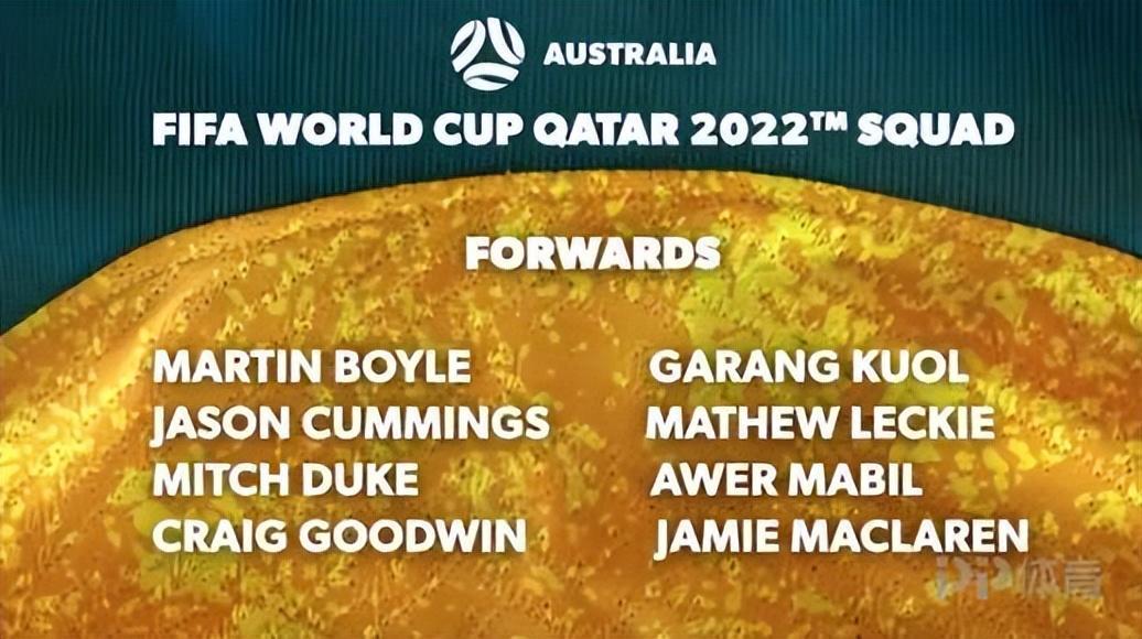 澳大利亞國家隊今日公佈卡塔爾世界盃參賽名單。