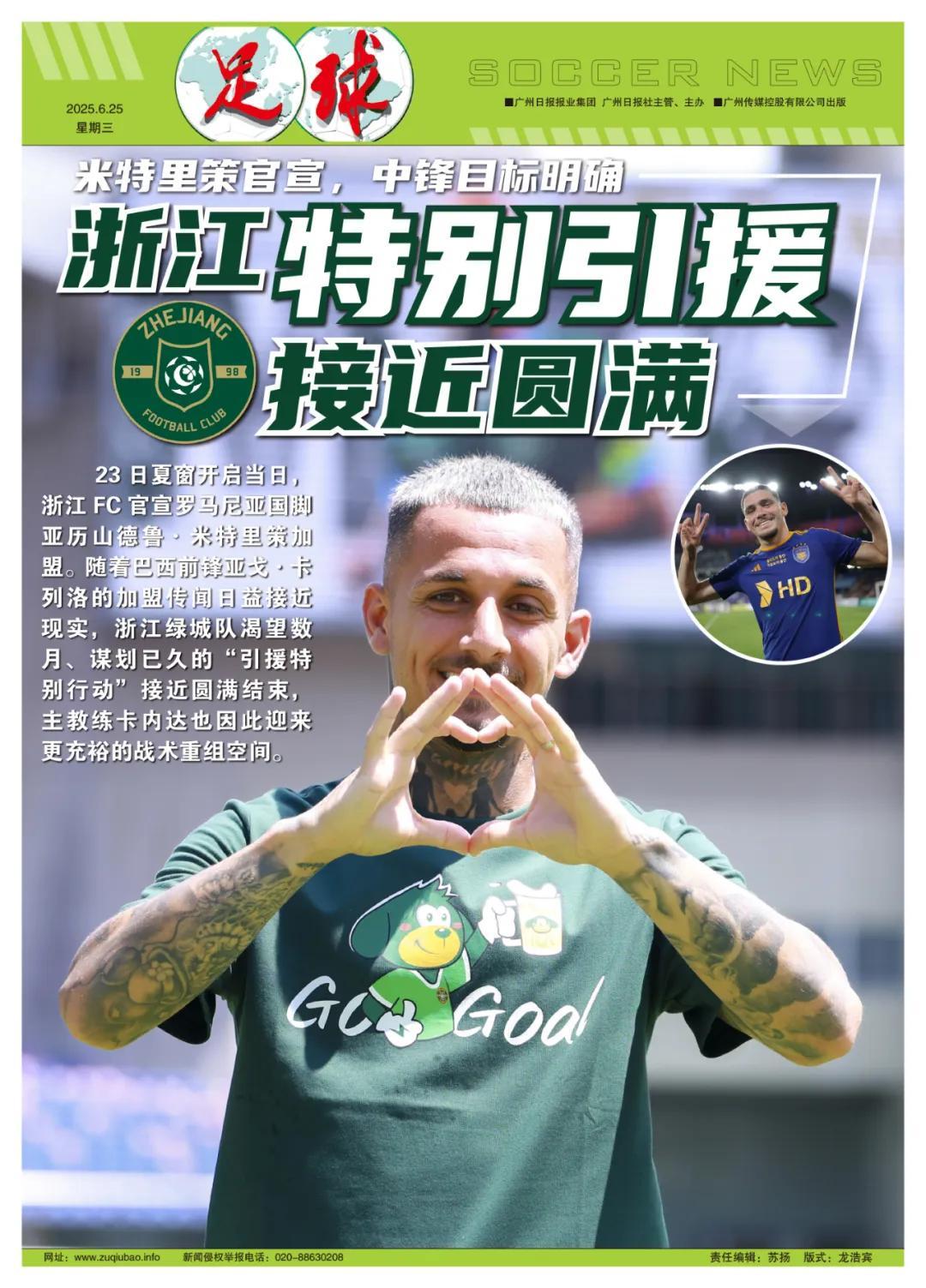 撰稿/左瑞 23日夏窗開啓當日,浙江FC官宣羅馬尼亞國腳亞歷山德魯·米特里策加盟。隨着巴西前鋒亞戈·卡列洛的加盟傳聞日益接近現實,浙江綠城隊渴望數月、謀劃已久的“引援特別行動”接近圓滿結束,主教練卡內達也因此迎來更充裕的戰術重組空間。