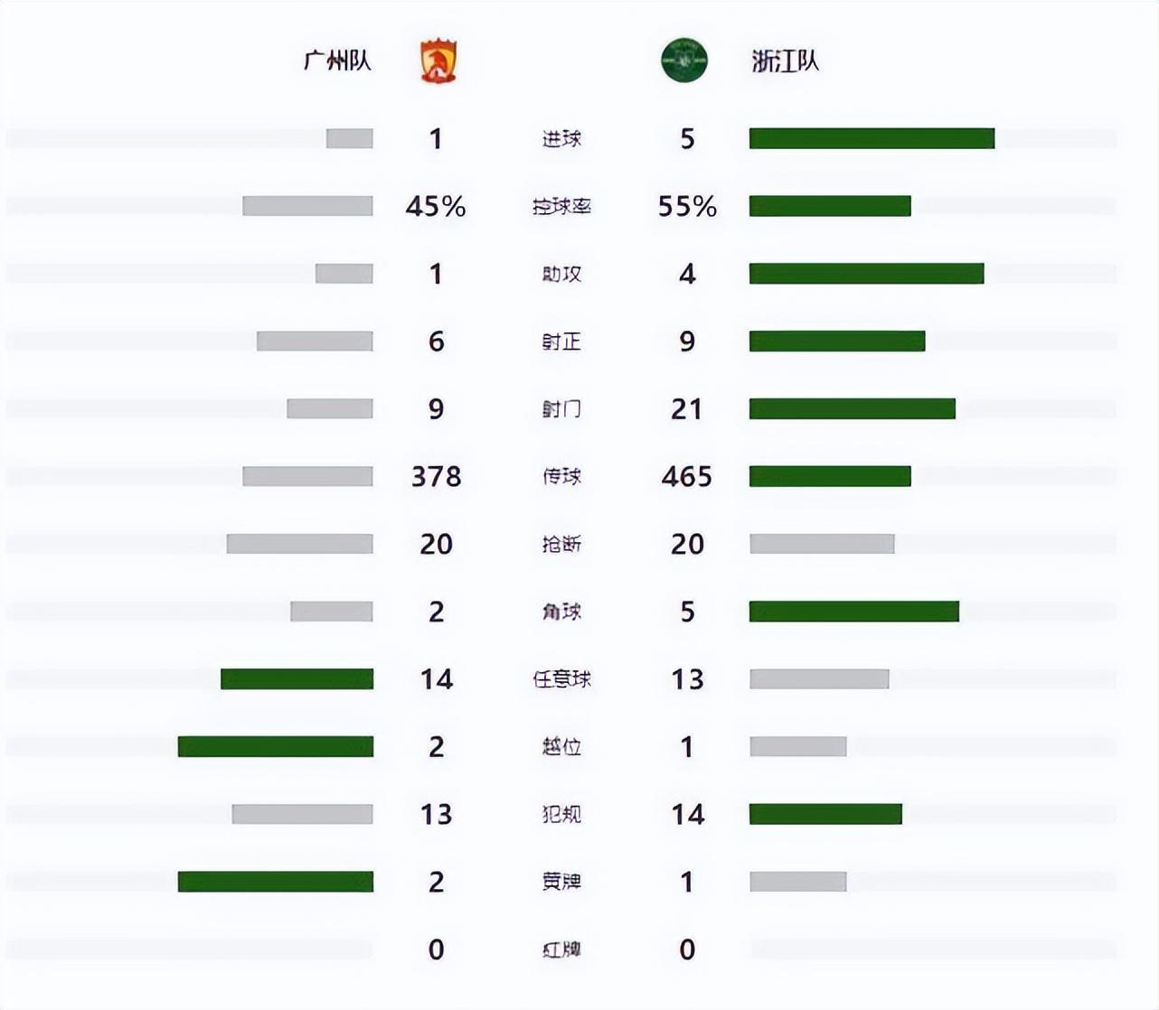 這一場1-5,讓中超8冠王廣州隊延續11輪不勝(4平7負),繼續刷新隊史中超最長不勝紀錄。他們上一次在中超贏球,還是在鄭智迴歸執教首秀4-1大勝深圳隊。在首回合較量時,廣州隊0-3落敗,如今又以1-5的比分輸球,這是他們隊史首次在被浙江隊兩回合雙殺。