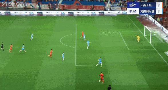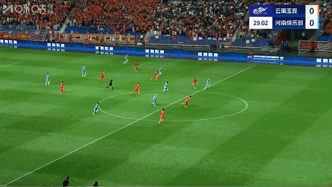 雨停下來沒多久,第30分鐘,客隊形成一次以多打少的反擊,阿奇姆彭在禁區左側接王上源傳球后抽射,玉昆球門失守。這一進球經過VAR介入判定爲有效,主隊0比1落後。這一比分被保持到上半場結束,對河南來說是反客爲主、以攻代守的當然結果,而對場面一直處於被動、進攻線路被切斷的玉昆來講,只失一球已屬不易。