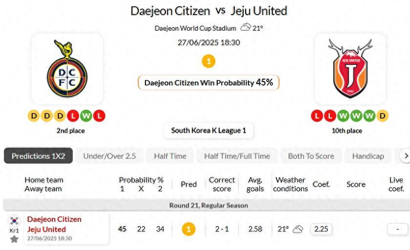 大田市民在K聯賽1的最後25場比賽中有21場保持不敗