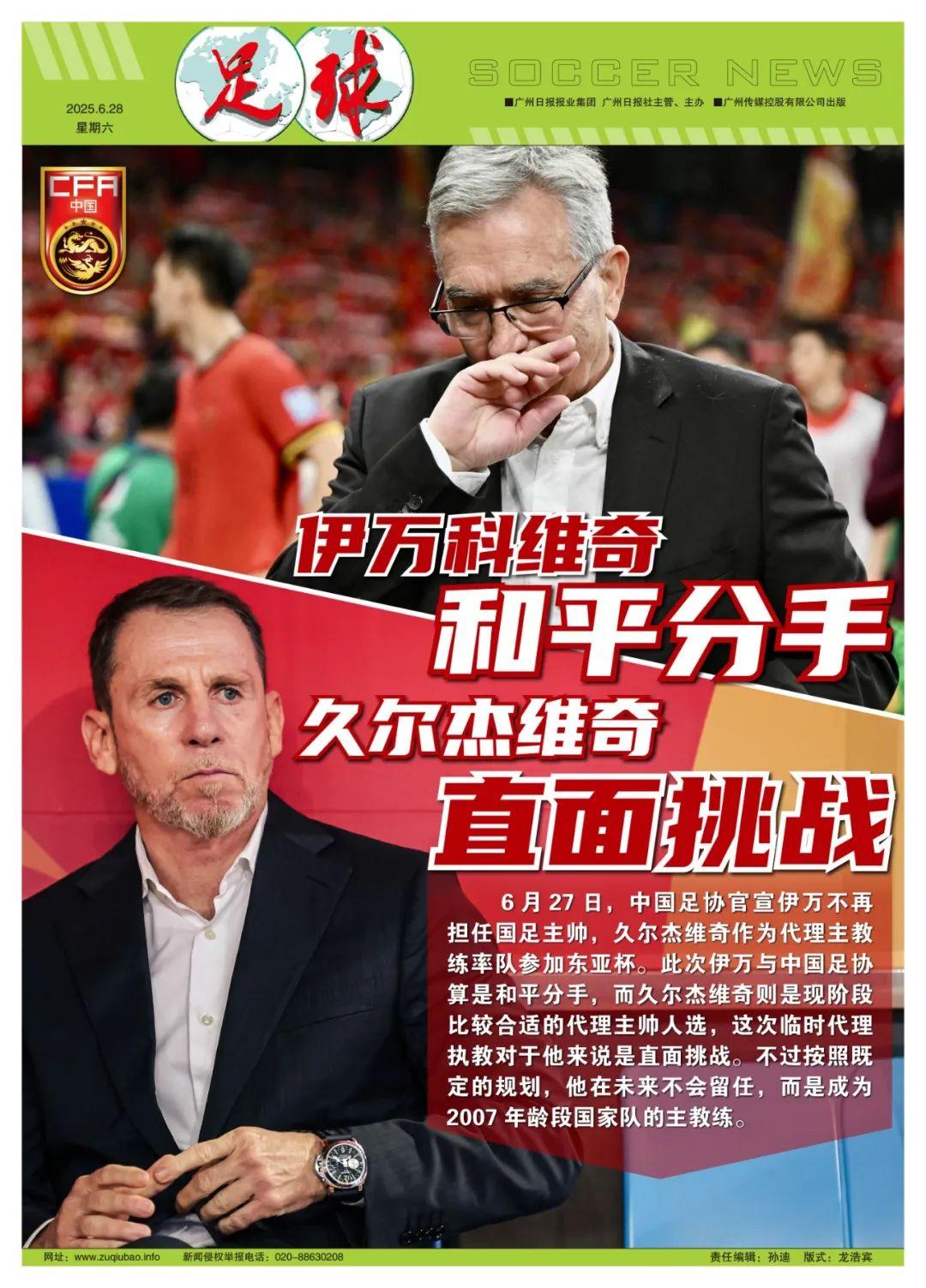 記者陳永報道 6月27日,中國足協官方宣佈伊萬科維奇不再擔任國足主帥,原U20國家隊主教練久爾傑維奇作爲代理主教練率隊參加東亞杯。此次伊萬與中國足協算是和平分手,雙方協商過程比較順利,他也在告別之際對中國足協表達了感謝。久爾傑維奇則是現階段比較合適的代理主帥人選,這次臨時代理執教對於他來說是直面挑戰,這樣的態度是值得肯定的,不過按照既定的規劃,他在未來不會留任,而是成爲2007年齡段國家隊(07國青)的主教練。