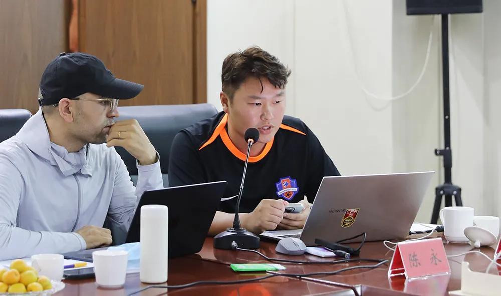 在全面介紹了申花青訓的發展歷程之後,上海申花U16隊助理教練黃宇軒有關技戰術基本原則的分享引發了多位教練員濃厚的興趣。比如申花在技戰術原則層面的幾個表述,“無論在場上的任意區域丟球,整支隊需根據球的位置以及各自所處的場上位置重新調整防守位置。在進攻中丟球時,我們有6秒的時間試圖去搶回球權,如果在6秒的時間內球隊未能搶下球權,所有球員尤其是在前場進攻區域的球員,必須退回中場參與防守,包括戰術犯規。”在上海申花講述的同時,與會教練員和助理教練頻頻點頭,並尋求得到上海申花青訓的PPT。