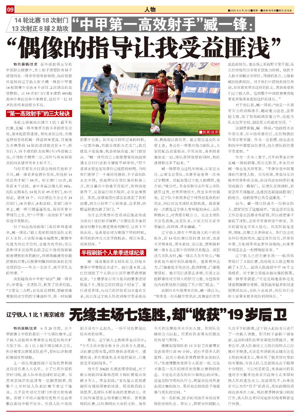 特約撰稿/沈君 在外援前鋒主導的中國職業聯賽中,本土射手想要躋身射手榜前列是一件非常艱難的事情,而經常替補登場的遼寧鐵人射手臧一鋒在中甲前14輪聯賽中交出8個進球、2次助攻的高效數據,以18次射門打進8球的44%超高命中率位居命中率榜首,這對於一位32歲的老將來說頗爲不易。