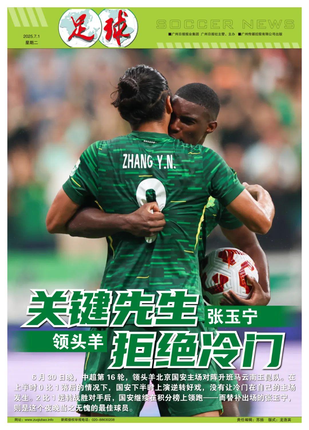 6月30日晚,在中超聯賽第16輪的比賽中,國安隊對陣升班馬雲南玉昆隊,結果在上半時0比1落後的情況下,下半時上演逆轉好戲,沒有讓冷門在自己的主場發生,2比1逆轉戰勝對手後,國安隊繼續在積分榜上領跑——而替補出場的張玉寧,則是這個夜晚當之無愧的最佳球員。