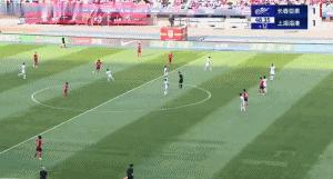 第69分鐘,替補出場的李新翔右路接直塞突入禁區倒三角傳中,同樣替補出場的蒯紀聞低射被吳亞軻沒收。