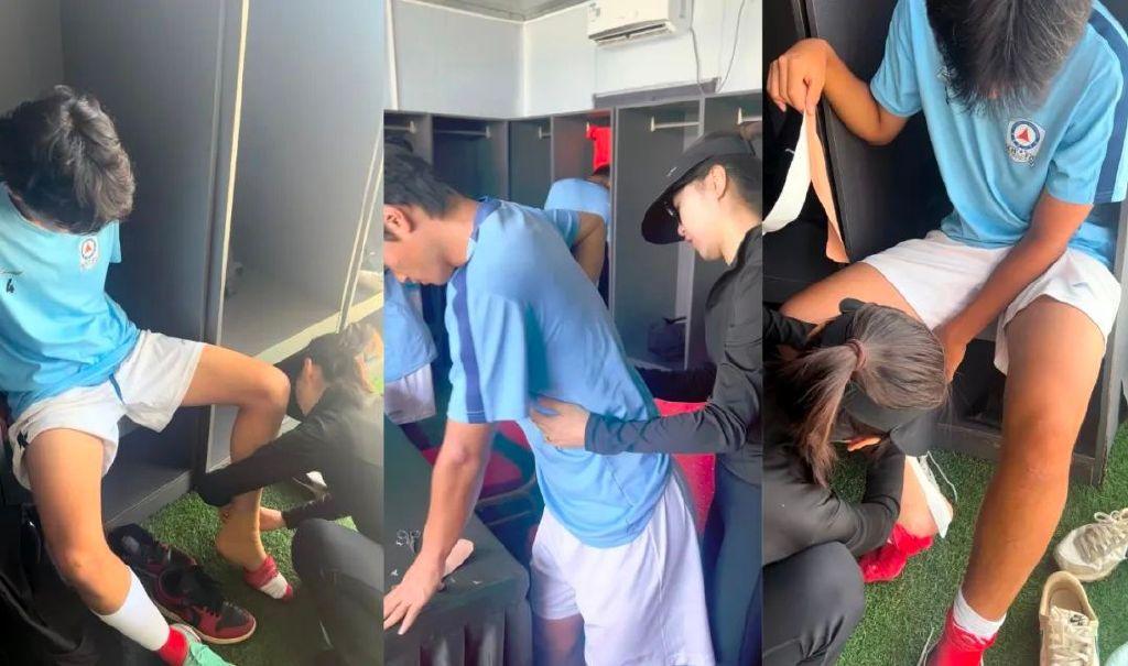 記者王偉報道 喜歡足球的人很多,但喜歡足球的醫生有多少並不好統計。在參加在廣州南沙舉行的2025百年名校杯足球賽隊伍當中有一位非常喜歡足球的女隊醫,她就是來自昆明市第一中學足球隊的徐麗。本屆賽事在廣州優聯學校舉行期間,她用實際行動爲自己贏得了“最美隊醫”的讚譽,也爲這屆賽事增添了一抹特別的亮色。