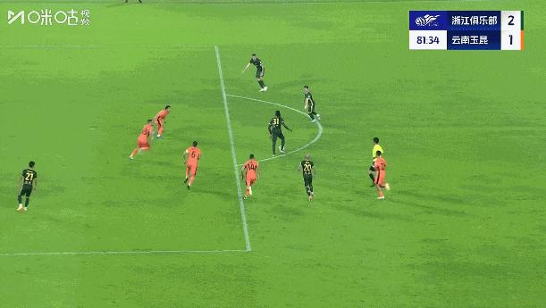 第73分鐘,主隊換上一批生力軍加強進攻。陶強龍、奧烏蘇同時出場,換下弗蘭克和被迪力穆拉提嚴防死守的王鈺棟。第80分鐘,米特里策再次從左路策動攻勢,奧烏蘇中路接球分到右路,亞戈晃倒迪力推射遠角再下一城。2比1!