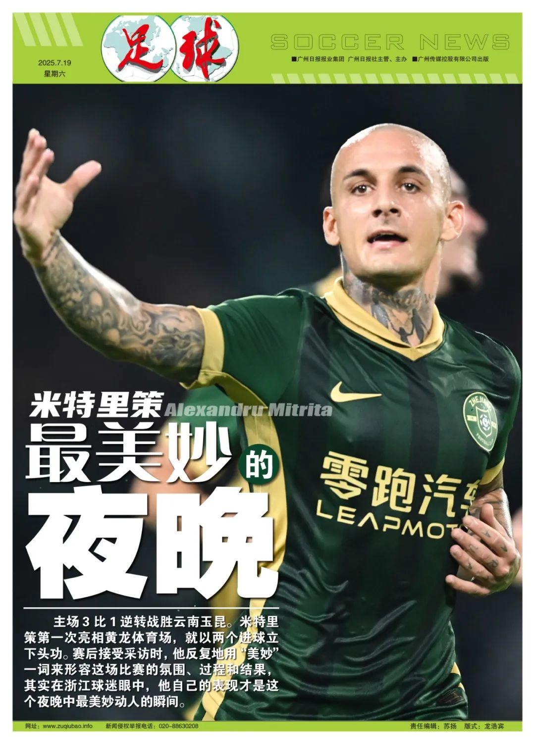 撰稿/左瑞 主場3比1逆轉戰勝雲南玉昆。米特里策第一次亮相黃龍體育場,就以兩個進球立下頭功。賽後接受採訪時,他反覆地用“美妙”一詞來形容這場比賽的氛圍、過程和結果,其實在浙江球迷眼中,他自己的表現纔是這個夜晚中最美妙動人的瞬間。