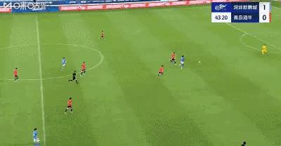 比賽第52分鐘,深圳新鵬城開出角球,杜加利奇將球打在海牛球員身上反彈出去,韋斯利抽射破門,上演帽子戲法!深圳新鵬城3比0領先青島海牛。