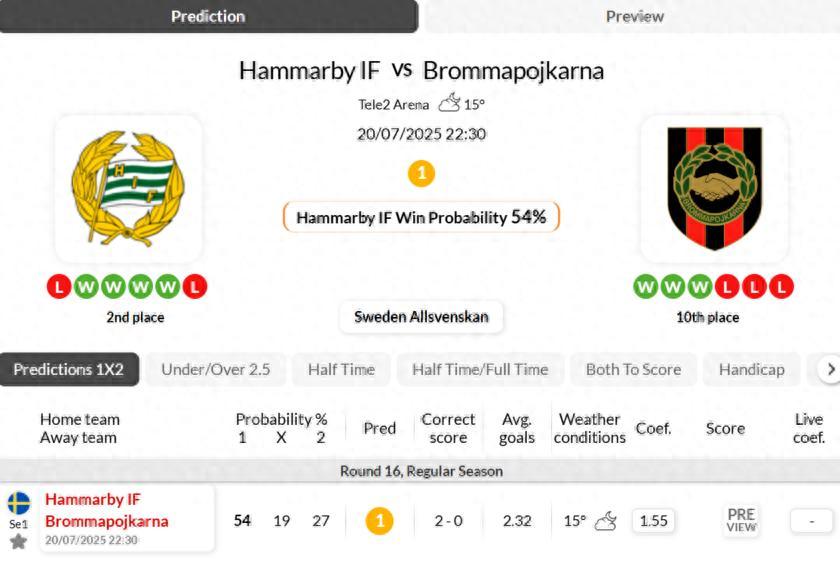 在最近32場瑞典超聯賽中,哈馬比有27場保持不敗。