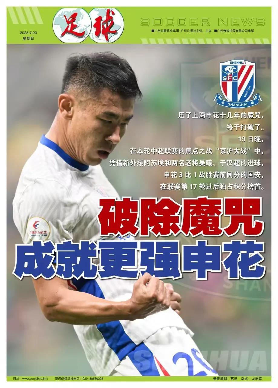 特約撰稿/甘慧 壓了上海申花24年的魔咒,終於打破了。19日晚,在本輪中超聯賽的焦點之戰“京滬大戰”中,憑藉新外援阿蘇埃以及兩名老將吳曦、于漢超的進球,申花3比1戰勝賽前同分的北京國安,在聯賽第17輪過後獨佔積分榜首。